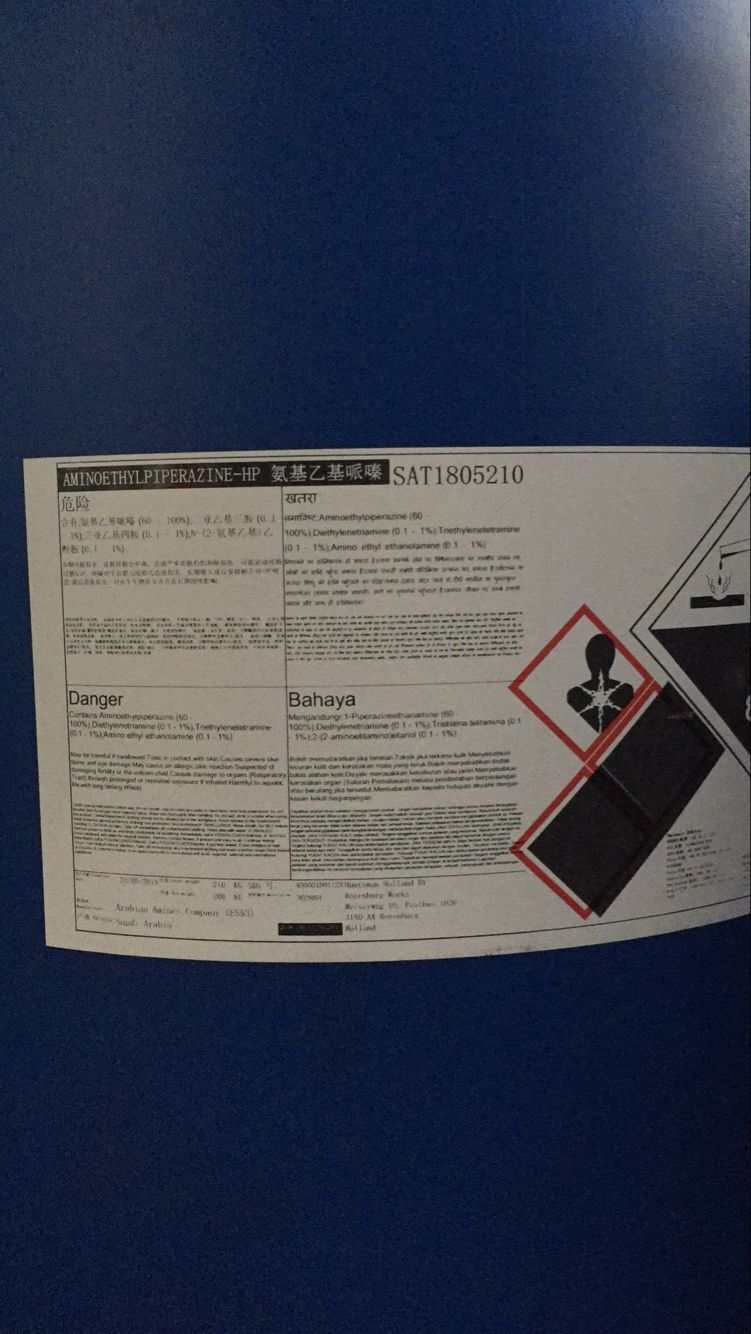 產(chǎn)品名 | N-氨乙基哌嗪 | 英文名 | N-Aminoethylpiperazine(AEP) | 產(chǎn)品外觀 | 液體 | 包裝規(guī)格 | 200kg/桶(塑料桶) | 產(chǎn)地 | 美國、沙特 | 供應(yīng)商 | 亨斯邁 | 應(yīng)用 | 固化劑 | 危險類別 | 8類危化品 | CAS NO | 140-31-8 |